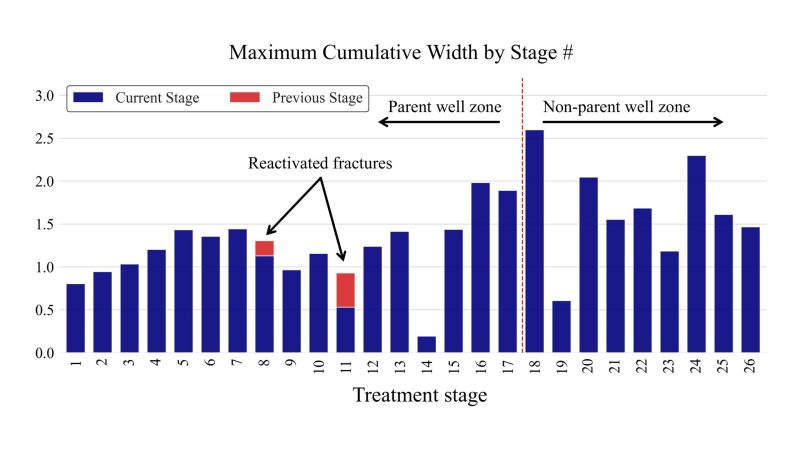 Our unique quantitative fracture width analysis offers advanced and actionable insights to optimize completion design programs. Applying our novel inversion algorithm, we can relate the strain change recorded at the monitor well with fracture induced rock deformations, enabling precise fracture width calculations.